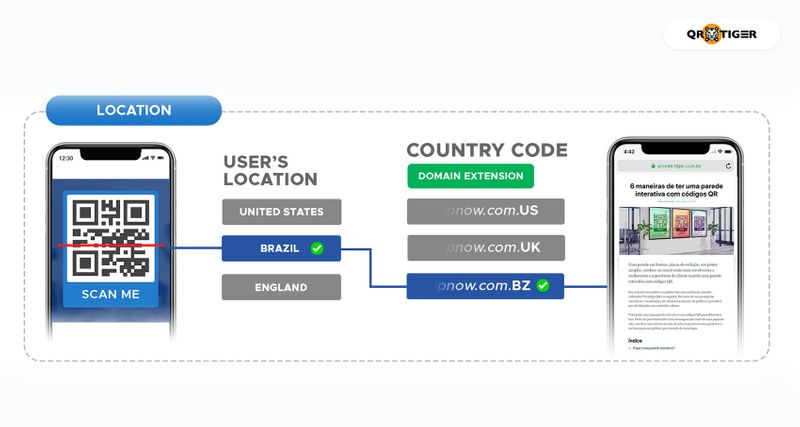 Location — These QR code features can be used to establish a user’s geographical or geo-locational position in order to redirect them.